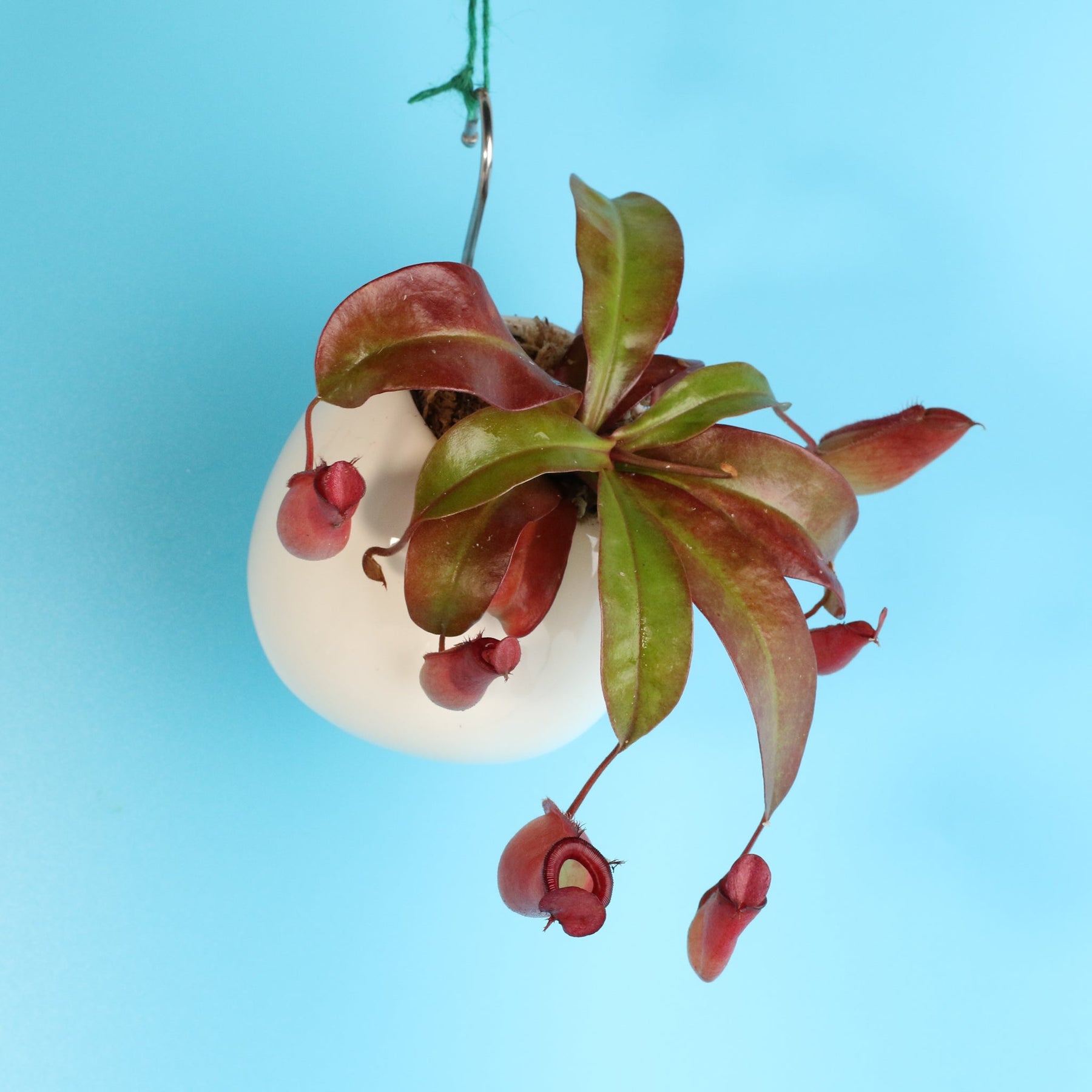 • Small Hanging 4" Kokedama Moss Ball"  - This plant comes packaged in a preserved moss ball.  Easy hang your pitcher plant in this chic and stylist moss ball planter.   4" Ball Size: 12" chain - 3" opening - 4" diameter