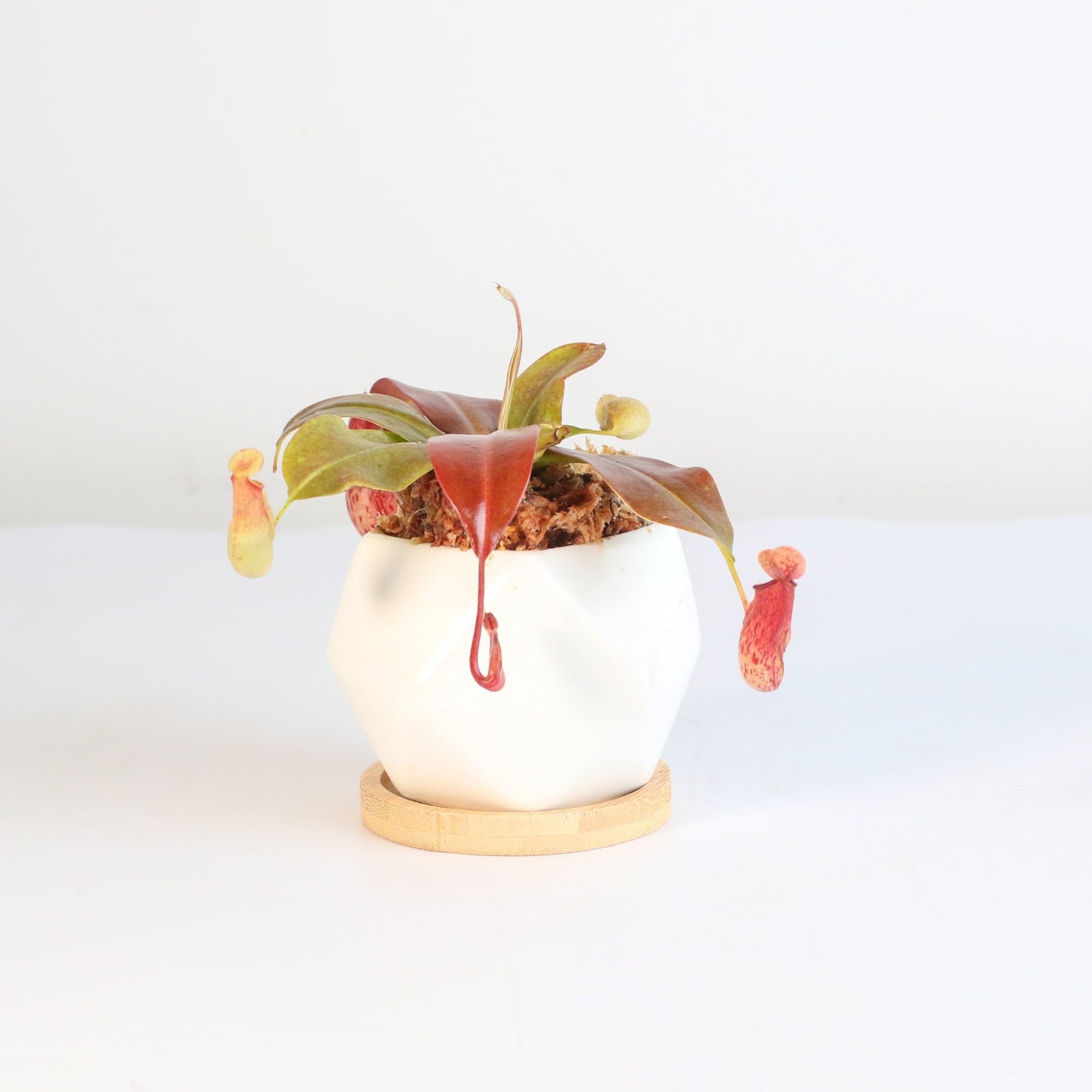 Whether you're new to carnivorous plants or a seasoned pro, this plant is easy to care for and thrives with just a bit of attention. Its vibrant colors and intriguing form make it a standout piece, ideal for desktops, windowsills, or terrariums. Add the Lady Luck Pitcher to your collection and enjoy a little piece of the wild indoors!  This hybrid variety of Nepenthes is known for its vibrant pitchers and insect-trapping abilities, making it a popular choice among carnivorous plant enthusiasts.
