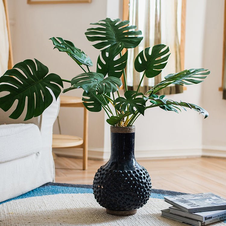Large South East Asia Navy Blue Domo Coarse Pottery Vase