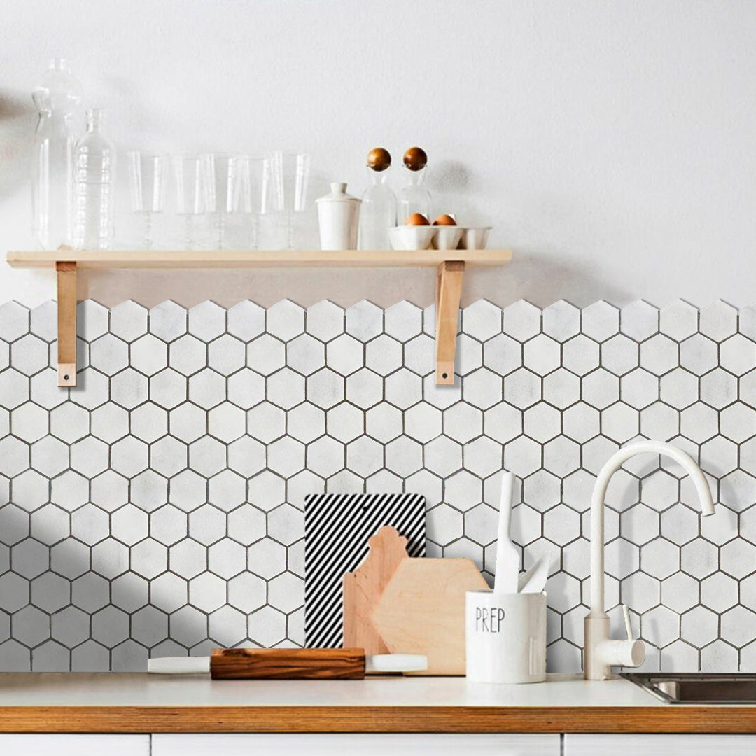 Carrara White Marble Hexagon 2" Polished Mosaic Floor and Wall Tile can turn your home into a paragon of elegance and sophistication. These exotic mosaics are extremely versatile and reflect centuries of building traditions going back to the ancient Greeks.