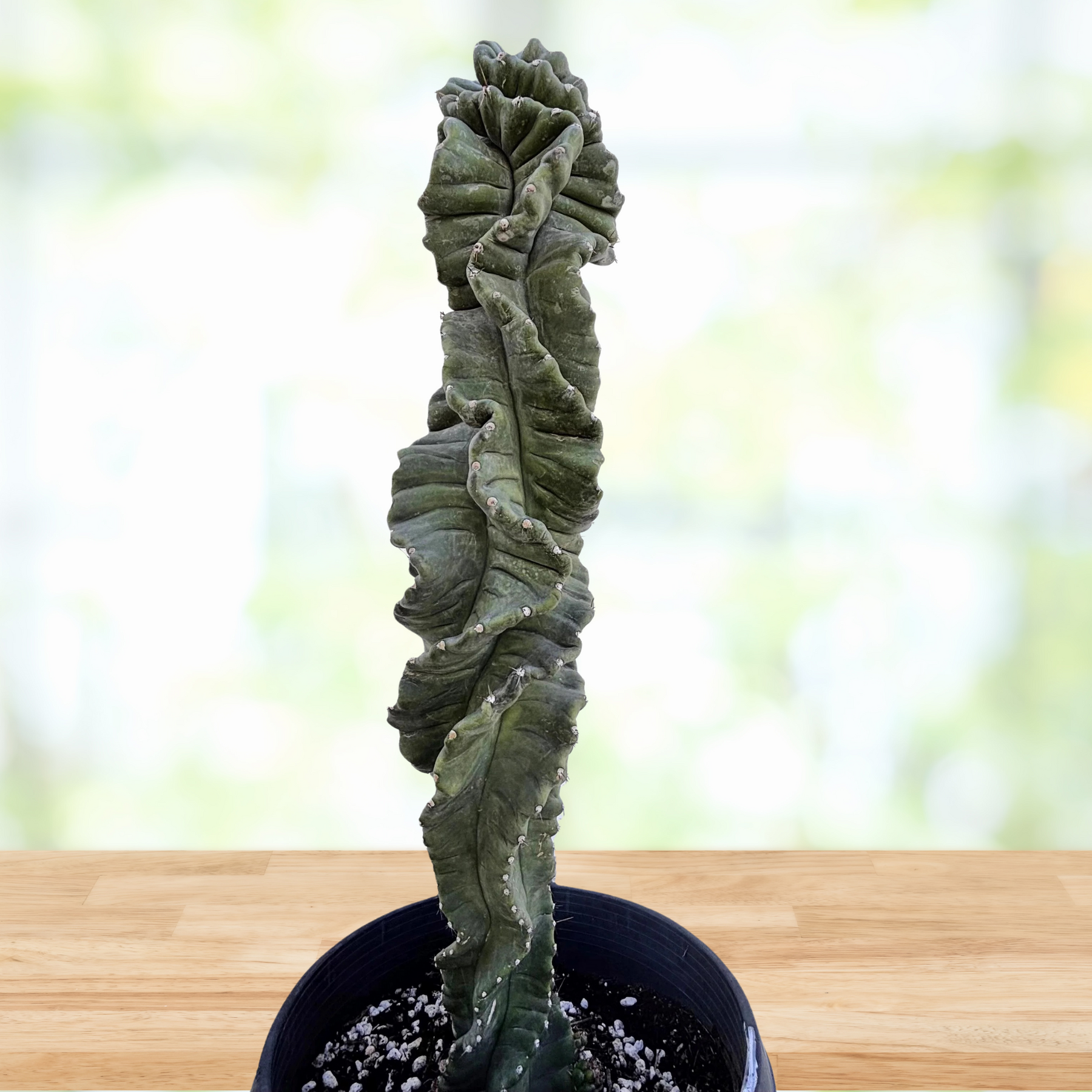 🌿 Unique Spiral Growth: Unlike typical columnar cacti, this variety grows in a stunning, twisting form, creating an eye-catching architectural presence. Its smooth, bluish-green ribs elegantly spiral upward, making it a standout feature in any collection.